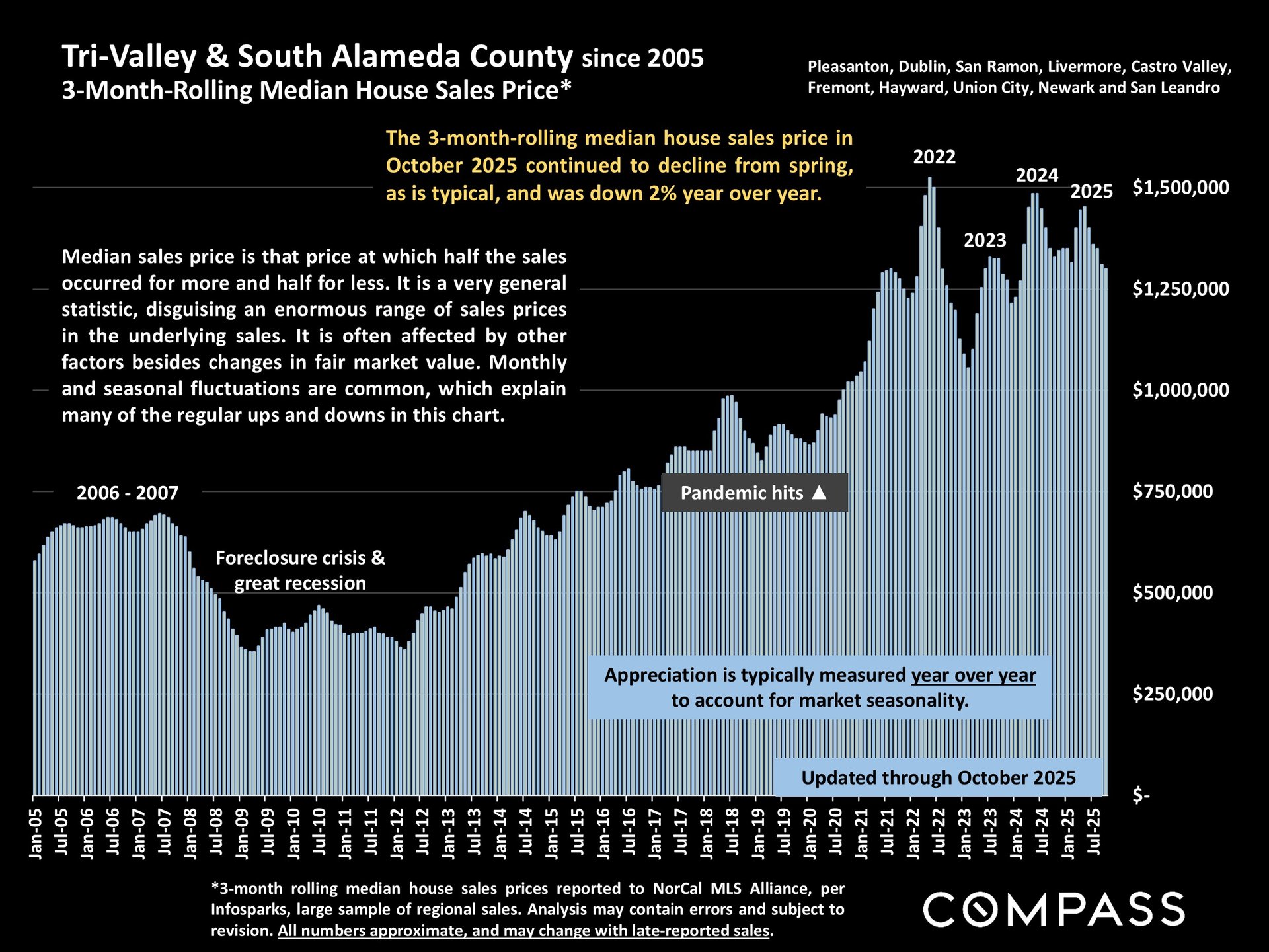 With our engineering background, we analyze data carefully to help you achieve the best outcomes. Below is a snapshot of the October 2025 real estate market in San Mateo, Santa Clara, and Alameda Counties.